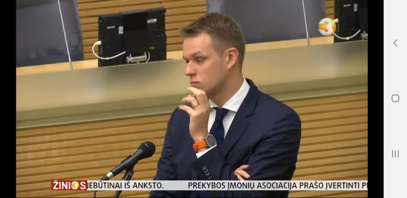 Seime G.Landsbergis pademonstravo savo naują laikroduką- jo vertė apie 300EUR.