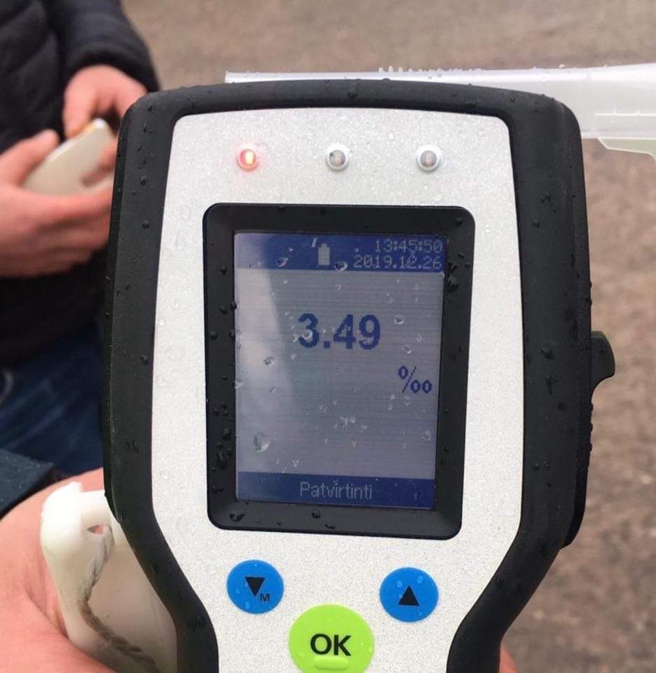 Gruodžio 26d. 15.45 val. Lietuvos policija pranešė, kad šių metų švenčių rekordininkas neblaivus už vairo, sustabdytas Vilniaus r. Vairuotojas į alkotesterį įpūtė 3.49 promiles. Iš viso nuo ryto sostinėje ir prieigose nustatyta net 12 neblaivių vairuotojų.