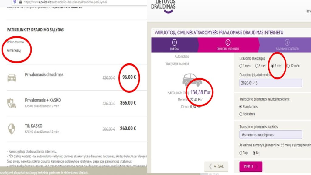 Vis daugiau vairuotojų savo automobilius civilinės atsakomybės privalomuoju draudimu drausti renkasi internetu. Tačiau neskubėkite pasirinkti pirmo pasitaikiusio draudiko, nes kainos skirtingose draudimo bendrovėse skiriasi ženkliai. Štai palyginome vieno įmonei priklausančio automobilio draudimo kainą skirtinguose draudimuose. Pasirodo draudimo įmoka tam pačiam automobiliui, tokiam pačiam 6 mėnesių draudiminiam laikotarpiui skiriasi net 40 Eur. BTA draudimo bendrovėje automobilį pusei metų jūs apsidraustumėte už 96 EUR., o lenkams priklausančioje bendrovėje „Lietuvos Draudimas” net už 134,38EUR. Panašaus automobilio draudimas tik jau priklausančio privačiam asmeniui pusei metų laiko BTA draudime kainuotų 34Eur., o lenkams priklausančioje bendrovėje „Lietuvos draudimas” 42,26 EUR. Tokį patį automobilį privalomuoju draudimu įmonės draudžia daugiau nei dvigubai brangiau negu privačių automobilių savininkai.