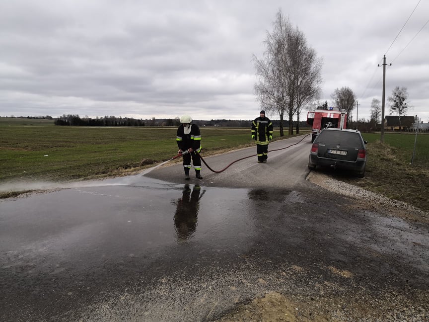 Balandžio 3d. apie 13 val., Kauno rajono Batniavos seniūnijos seniūnas sulaukė susirūpinusių vietos gyventojų skambučių. Žmonės pranešė, kad Gineitų kaime, ant visai neseniai išasfaltuoto kelio pastebėjo labai daug prisibarsčiusių rausvos spalvos trąšų. Įvykio vietoje buvo sutiktas seniūnijos seniūnas Šarūnas Pikelis, kuris kartu su jau atvykusiais ugniagesiais-gelbėtojais, ir kitais vietiniais pagalbininkais organizavo padarinių tvarkymo darbus.Didžioji trąšų dalis buvo sušluota su prie traktoriaus kabinamu mechanizmu, o likusius jų pėdsakus, kad šios nepakenktų vos prieš pusmetį paklotai naujai dangai, gelbėtojai kruopščiai nuplovė vandens srove. Tokie gelbėjimo darbai trąšas išbarsčiusiam vietiniam ūkininkui gali paploninti piniginę. Nustačius kas tiksliai tai padarė greičiausiai už visą kelio tvarkymo operaciją tekų susimokėti. Pasak seniūno, kas tai padarė jis tikrai žino.