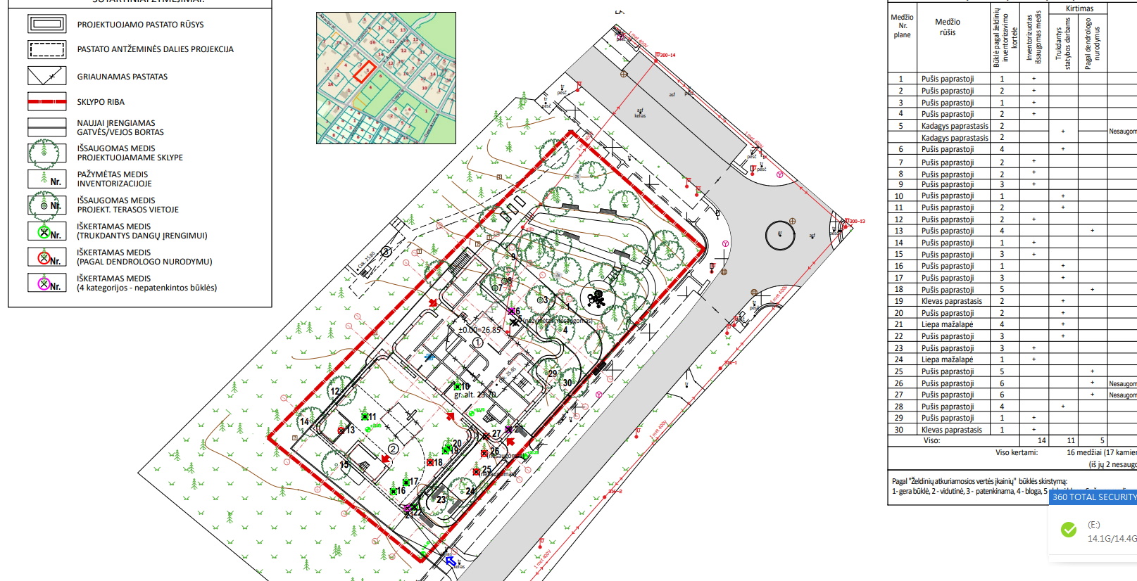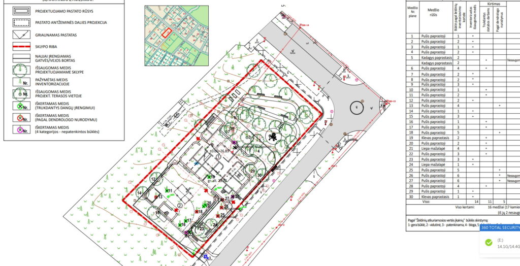 Nurodoma, kad kertami medžiai bus atsodinami arba kompensuojami pagal